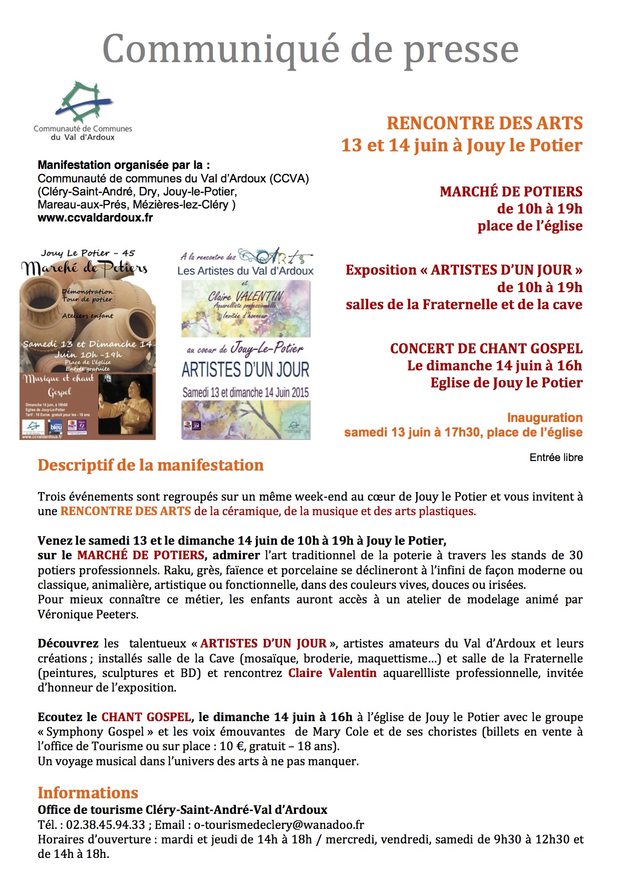 Rencontre des Arts à Jouy le Potier 13 et 14 juin 2015 Partager : Partager sur X(ouvre dans une nouvelle fenêtre) X Partager sur Facebook(ouvre dans une nouvelle fenêtre) Facebook J’aime chargement…
